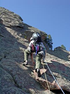 Grateful to be back on non-technical ground, we hiked down the trail to the base, marvelling at the shear distance we'd climbed. Nine pitches is the longest climb I've ever done and most of those pitches were a full 60 meter rope length! We retrieved our gear back at the bottom of the rock and hiked back out to Chautauqua in the fading light.